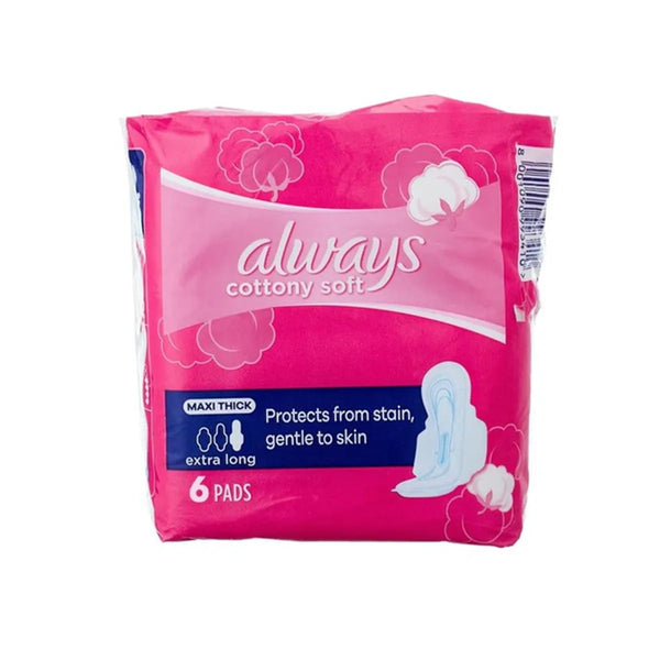 Experience ultimate comfort and protection with ALWAYS PAK MAXI THICK COTTON SOFT EXTRA LONG. Made from high-quality materials, these 6CS sanitary pads provide long-lasting absorbency and unparalleled softness. Trust in our expertly designed product for all-day confidence.