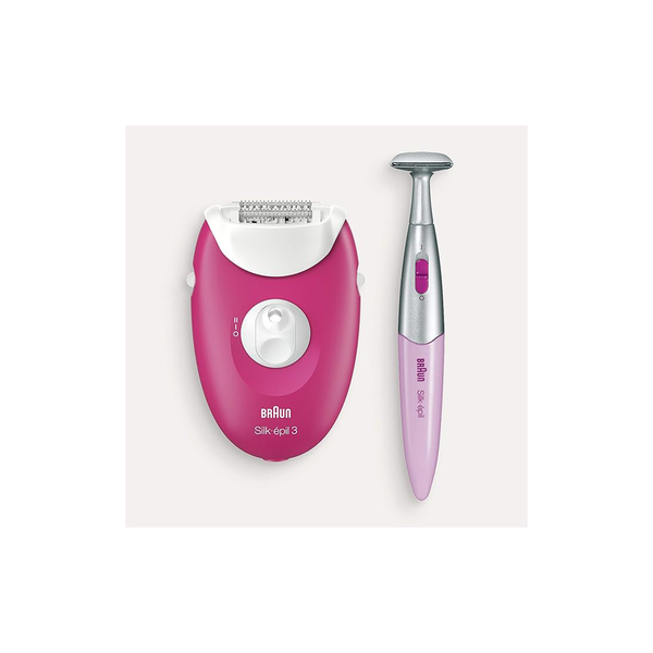 The Braun Silk Epil 3 Epilator Plus Massage Rollers And Bikini Trimmer 3420 Pink is a versatile hair removal device designed for women. It features massage rollers that gently stimulate the skin and reduce discomfort during epilation.