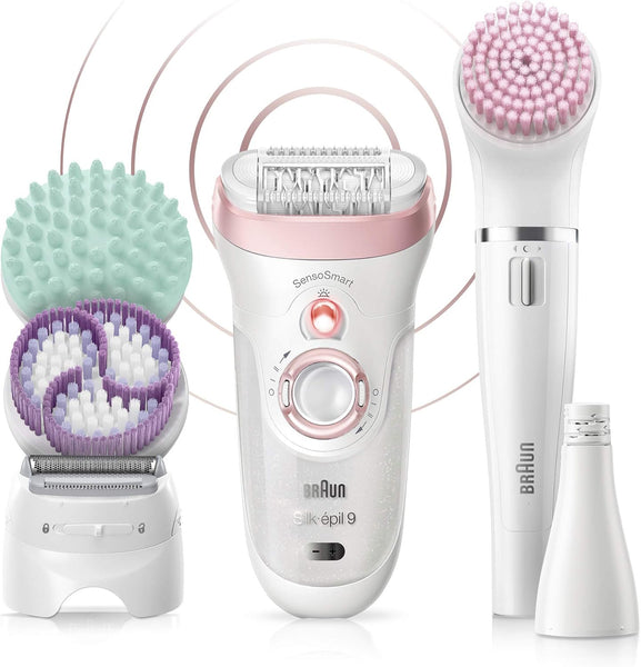 Braun FaceSpa. Silk-épil Beauty Set 9, the deluxe hair removal set for face & body. Exfoliate, epilate, shave, trim, tone, cleanse, 3x body exfoliation & massage attachments remove dead skin, to prevent ingrown hairs. Epilator removes 4x shorter hair than wax for up to 4 weeks of smooth skin.