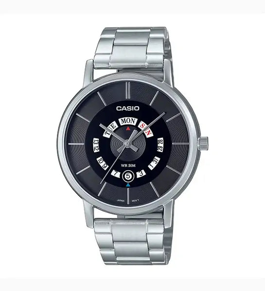 MTP-B135D-1AVDF Casio Black Dial Silver Stainless Steel Chain Quartz Men's Watch.