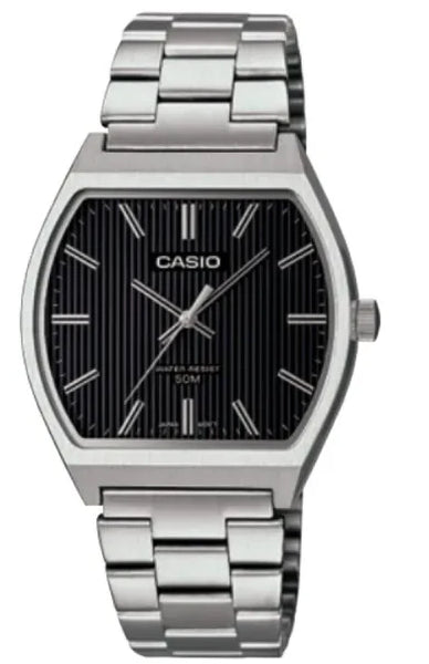 MTP-B140D-1AVDF Casio Black Dial Silver Stainless Steel Chain Analog Men's Watch.