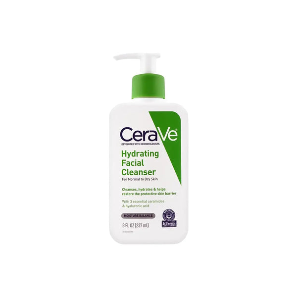 Experience clean, refreshed, and hydrated skin with CeraVe Hydrating Facial Cleanser 237ml. Formulated with essential ceramides, hyaluronic acid, and glycerin, this dermatologist-developed cleanser removes dirt, oil, and makeup without stripping your skin’s natural moisture barrier.