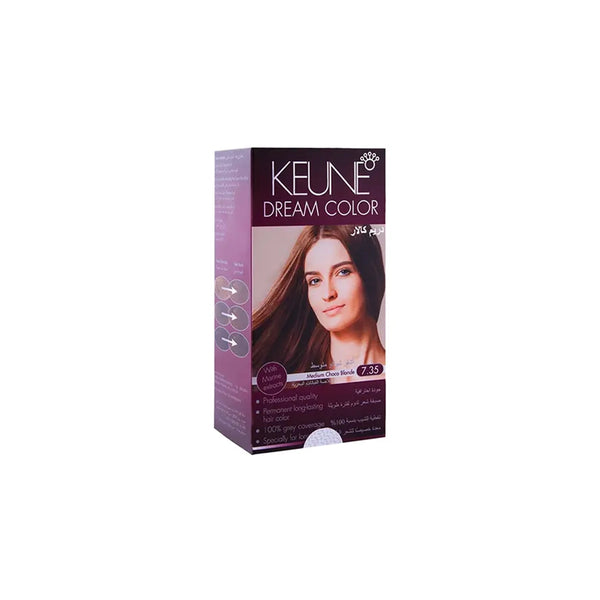 This shade of KEUNE DREAM COLOR offers 100% grey coverage, vibrant color, and long-lasting results. Formulated with nourishing ingredients, it leaves hair looking and feeling healthy and shiny. Achieve a natural-looking, multidimensional color with KEUNE DREAM COLOR NO 07.35.