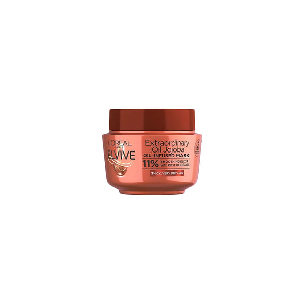 This professional-grade LOREAL ELVIVE EXTRAORDINARY OIL JOJOBA INFUSED MASK provides intense nourishment for dry, damaged hair. Enriched with jojoba oil, it strengthens and hydrates, leaving hair soft and shiny. Transform your hair with 300ml of luxurious, salon-quality treatment.