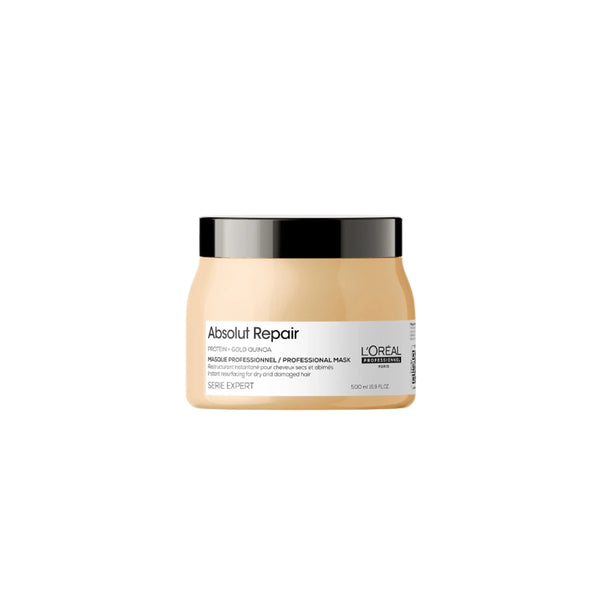 Loreal Pro Absolut Repair Masque is a 500mL gold hair treatment that uses advanced technology to repair and nourish damaged hair. With high-quality ingredients, it strengthens and restores hair, leaving it smooth and shiny. Trust in this expert formula for visible results.