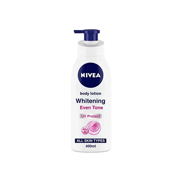 NIVEA BODY LOTION 400ML UV WHITENING provides all-day hydration while protecting skin from harmful UV rays. Its whitening formula helps improve skin tone and visibly reduce dark spots, leaving skin soft and radiant. Dermatologically tested and suitable for all skin types.
