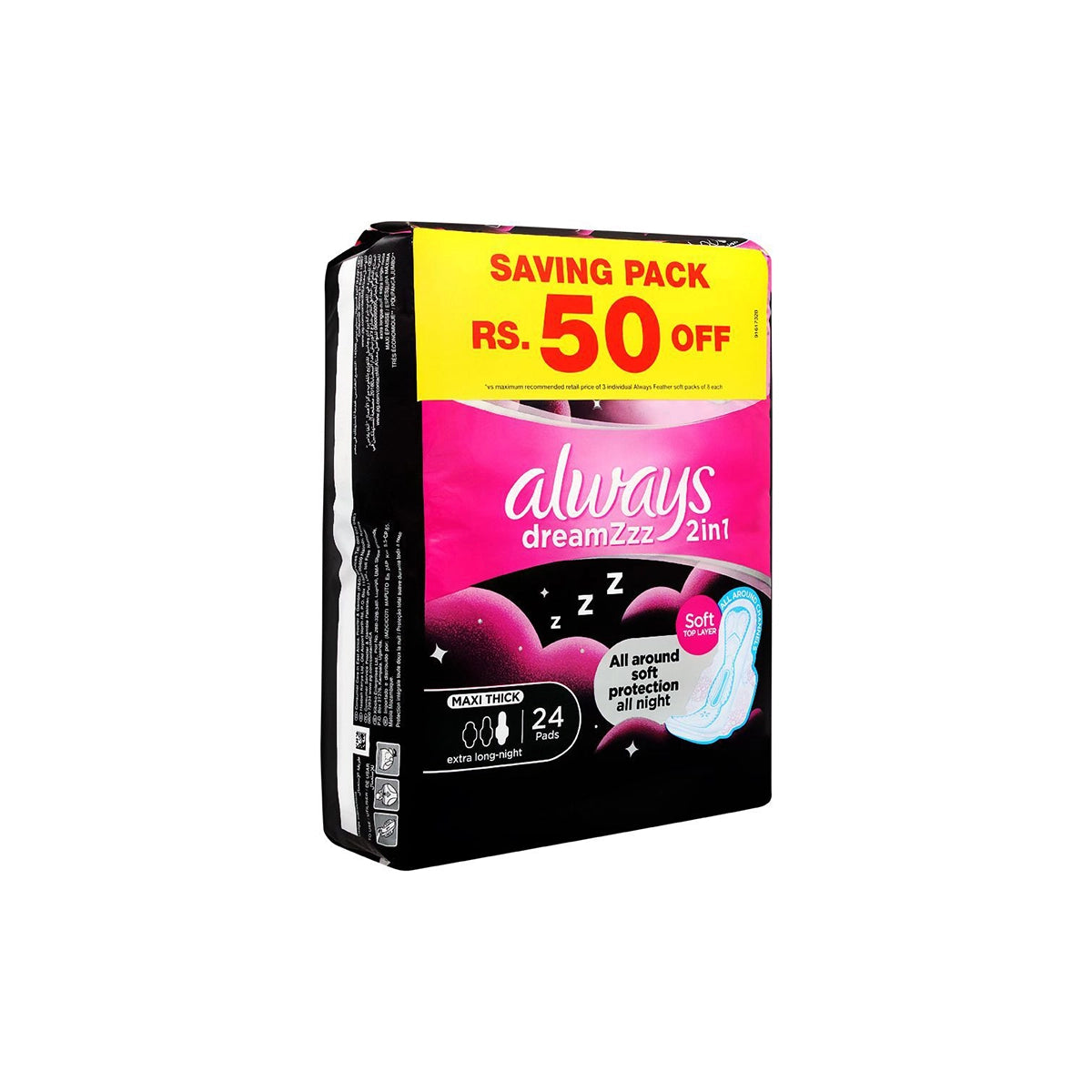 Experience a comfortable night's sleep with ALWAYS PAK MAXI THICK DREAMZ ALL NIGHT 24CS. Its thick and absorbent design provides full coverage protection throughout the night. Rest easy knowing you're protected with this trusted brand.