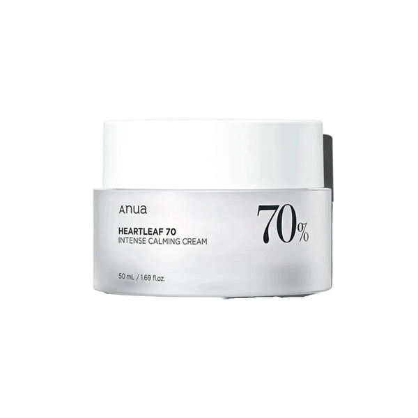 Soothe and stabilize reactive skin with Anua Heartleaf 70 Intense Calming Cream, a concentrated 50ml treatment formulated with 70% houttuynia cordata (heartleaf) extract. This expert-developed cream harnesses the anti-inflammatory and antimicrobial properties of heartleaf to rapidly reduce redness, irritation, and sensitivity. The rich, nourishing texture provides immediate relief while strengthening your skin's resilience against environmental stressors. Ideal for inflamed, acne-prone, or compromised complexions, it delivers visible calming effects without irritation. Layer as the final step in your routine to lock in benefits and achieve a balanced, comfortable complexion with enhanced skin barrier function and lasting tranquility.