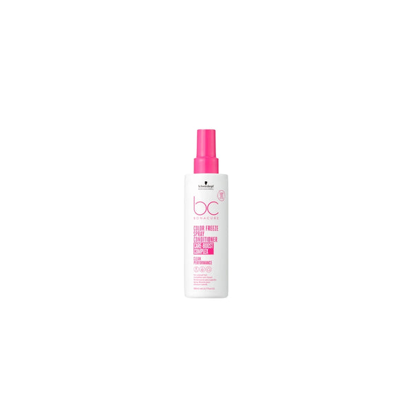 Maintain vibrant, long-lasting color with BONACURE CONDITIONER SPRAY 200ML COLOR FREEZE. Its advanced formula protects hair from fading and nourishes for a healthy, shiny look. Easy to use and no need to rinse, this spray conditioner is a must-have for color-treated hair.