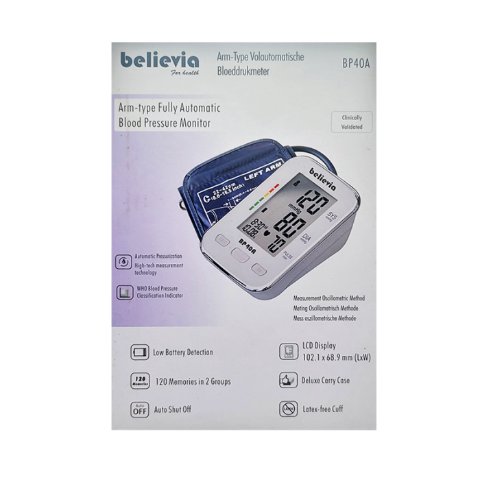 The BELIEVIA BP40A BP APP UPER ARM is a clinically-validated, easy-to-use blood pressure monitor. Use the accompanying app to track your readings over time and share them with your doctor. With accurate readings and convenient tracking, managing your blood pressure has never been easier.