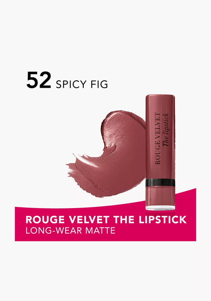Experience a luxurious and bold look with BOURJOIS LIPSTICK ROUGE VELVET MATTE 52 SPICY FIG. This highly pigmented matte lipstick glides on smoothly for a long-lasting, velvety finish. With 52 SPICY FIG, your lips will feel hydrated and look stunning throughout the day.