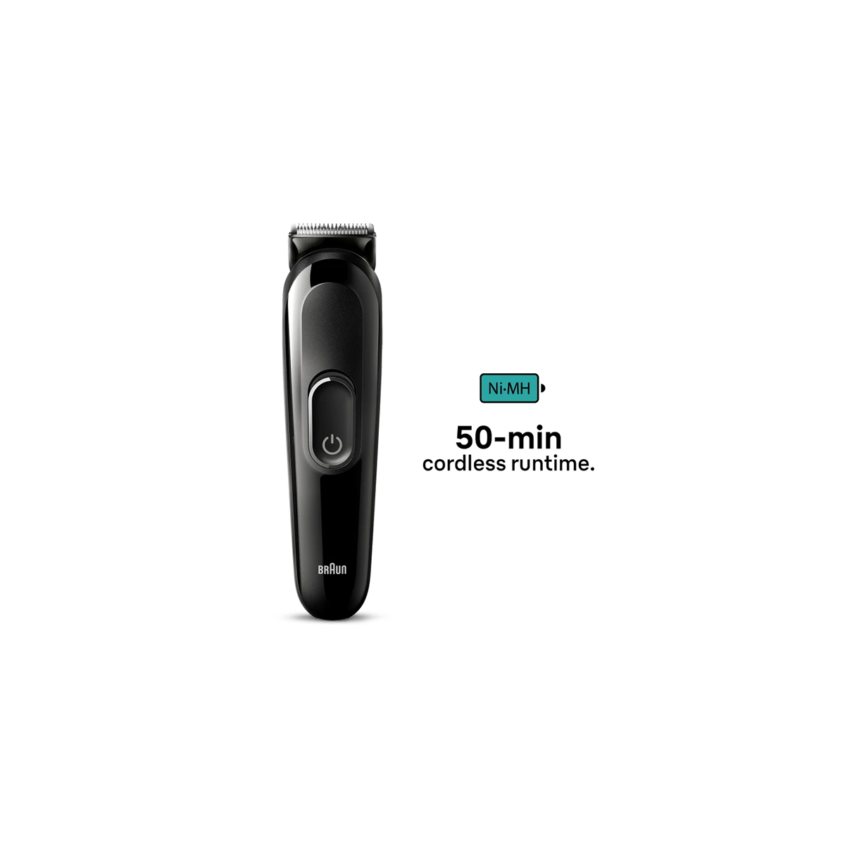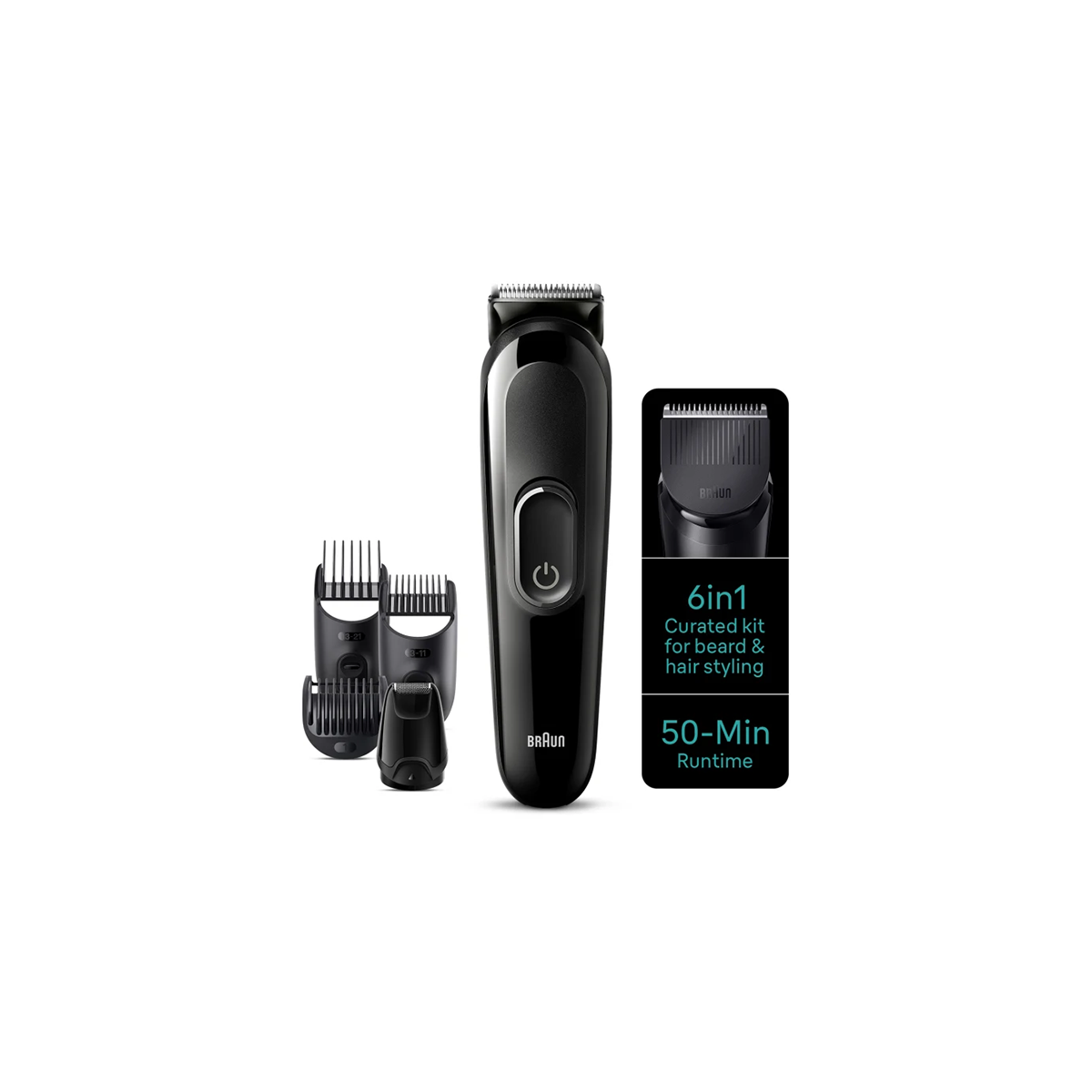 Braun's 6-in-1 Style Kit for beard and hair grooming: curated tools for beard clipping, precision shaving, and hair clipping from home. Your style, effortlessly: the ultra-sharp blade is efficient in every stroke, even in tricky areas for great finishes and comfortable all-over body grooming.