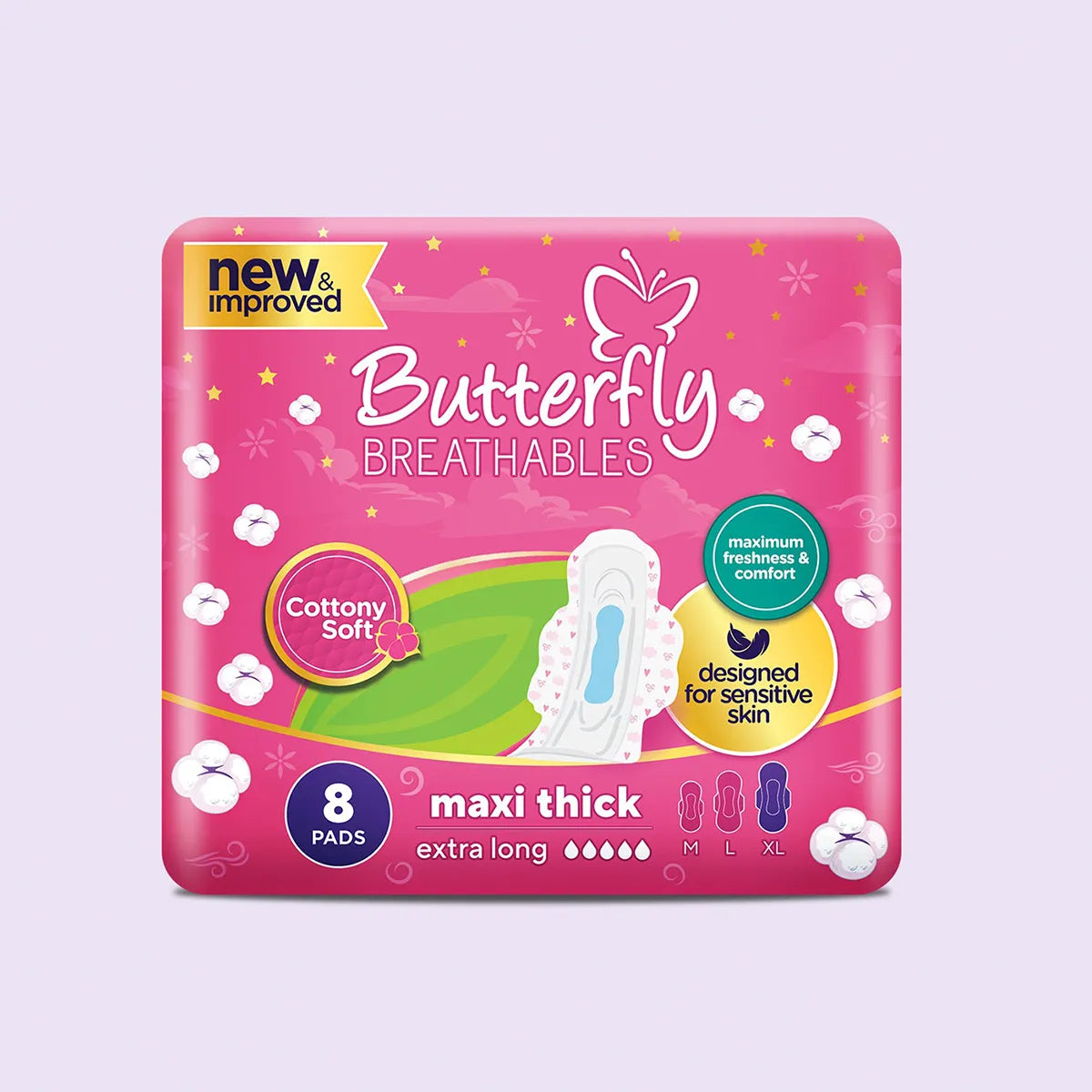 The BUTTERFLY PADS BREATHABLES MAXI THICK COTTON EXTRA LONG 08CS provides ultimate comfort and protection for your period. Made with breathable materials and an extra long design, these pads will keep you feeling fresh and confident all day long.