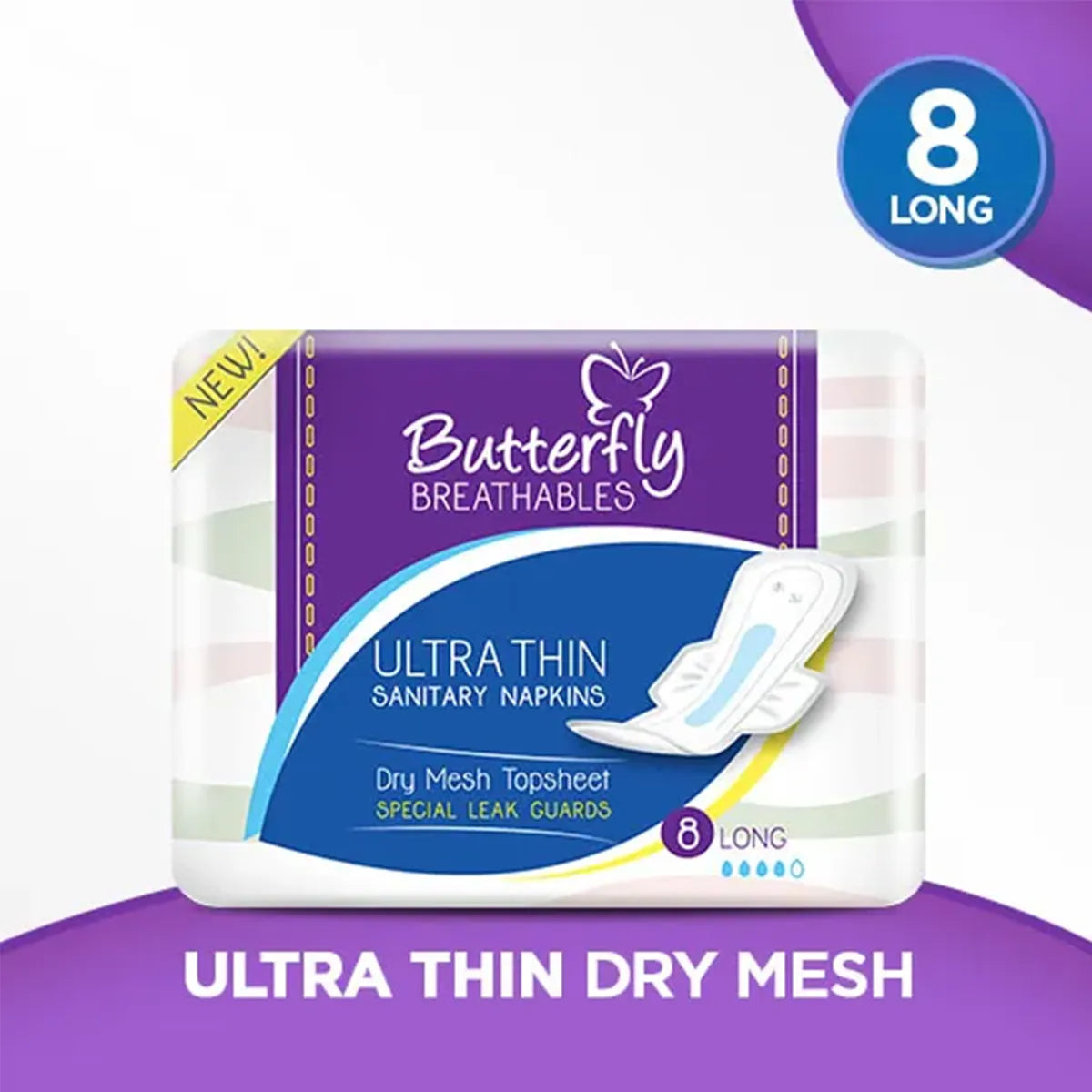 Introducing BUTTERFLY PADS BREATHABLES ULTRA THIN DRY MESH LONG 08CS. Experience ultimate comfort and protection with our ultra-thin and breathable pads. Made with dry mesh technology for quick absorption and long-lasting freshness. Feel confident and comfortable all day long with our 08CS pack.