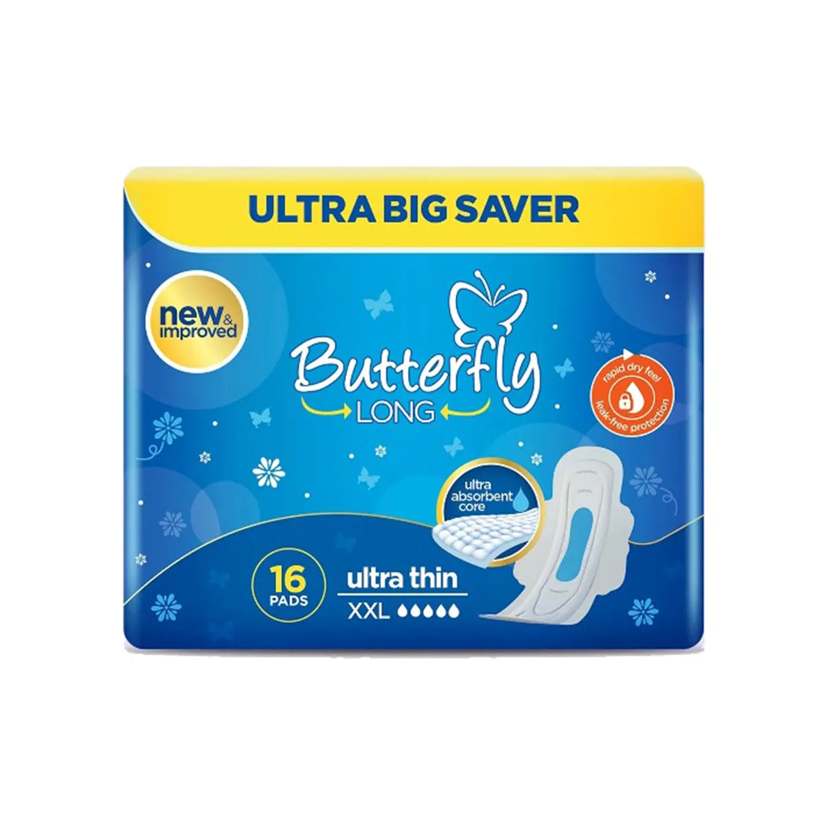 Experience long-lasting comfort and protection with BUTTERFLY PADS LONG ULTRA THIN XXL 16CS. These ultra-thin pads offer XXL size coverage and a unique butterfly design for a secure fit. Stay confident and worry-free all day long.