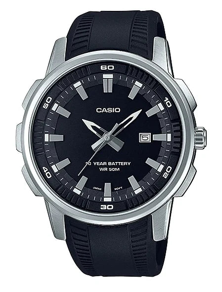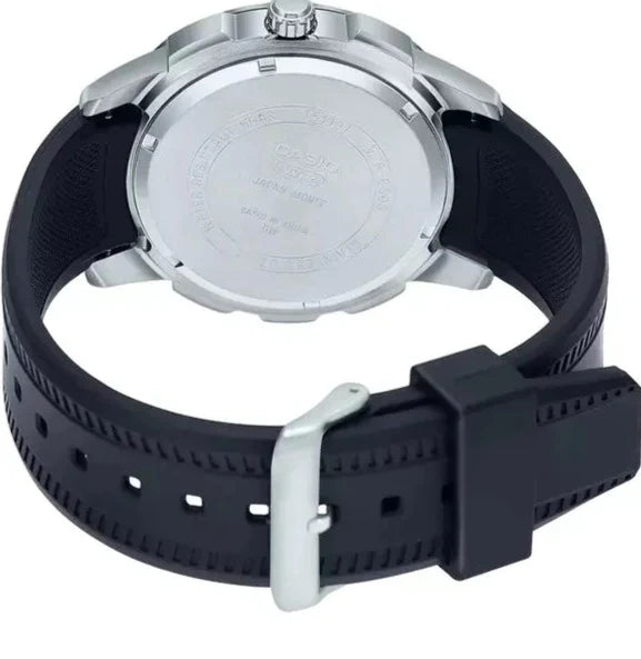 Elevate your wristwear with the Casio MTP-E195-1AVDF, a perfect combination of luxury and reliability. This men’s watch features a bold black dial, silver stainless-steel case, and a durable resin band that offers both style and comfort for everyday use.