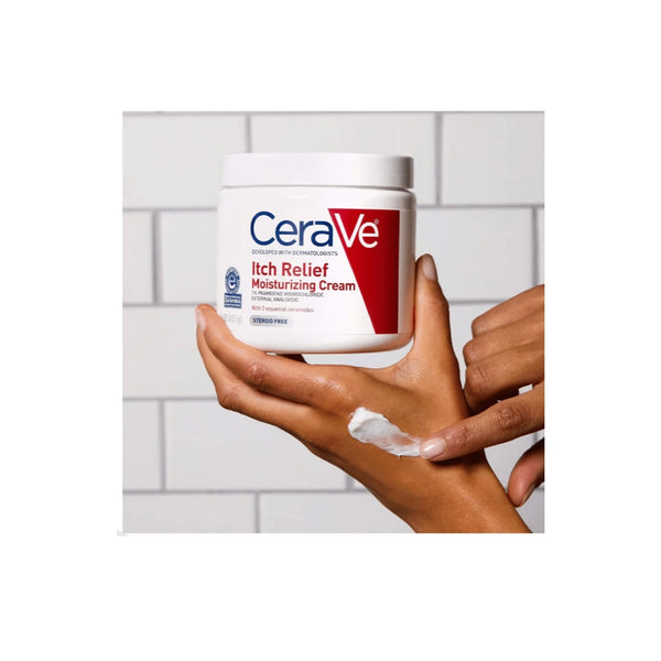CeraVe Itch Relief Moisturizing Cream 340g delivers fast-acting, long-lasting relief from itching and irritation caused by eczema, dry skin, insect bites, and sunburn. Formulated with 1% pramoxine hydrochloride, this dermatologist-developed cream provides temporary itch relief within 2 minutes that lasts up to 8 hours.