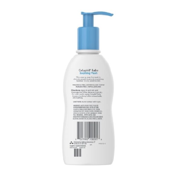 Cetaphil Baby Soothing Wash 296ml is specially formulated to cleanse and hydrate your baby’s delicate skin without drying or irritation. Enriched with natural emollients, it gently softens, smooths, and restores moisture, leaving your baby’s skin feeling healthy, calm, and nourished after every bath. The hypoallergenic and tear-free formula makes it safe for daily use, even on sensitive skin. Trusted by dermatologists and loved by pare