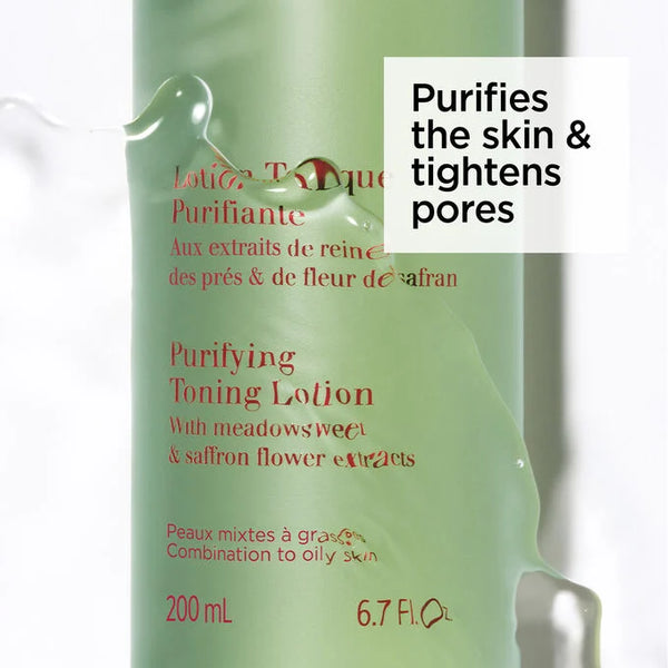 Clarins Purifying Toning Lotion is a refreshing, plant-based, colorant- and alcohol-free face toner—with Witch Hazel and Organic Meadowsweet extracts—gently tones and hydrates combination to oily skin leaving it soft, shine-free, and refined.