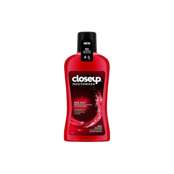 Experience intense freshness and a powerful clean with Close Up Mouthwash. With a concentrated formula and 500mL of product, this mouthwash effectively removes plaque and bacteria without leaving a strong aftertaste. Enjoy a red hot burst of flavor while killing 99% of bad breath-causing germs.