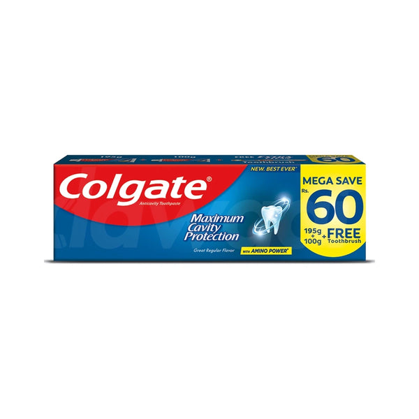 Protect your teeth with Colgate Pak Toothpaste, formulated with maximum cavity protection. Experience long-lasting oral health benefits with this 295gm pack. Trust in the expertise of Colgate to provide effective and scientifically proven protection against cavities.