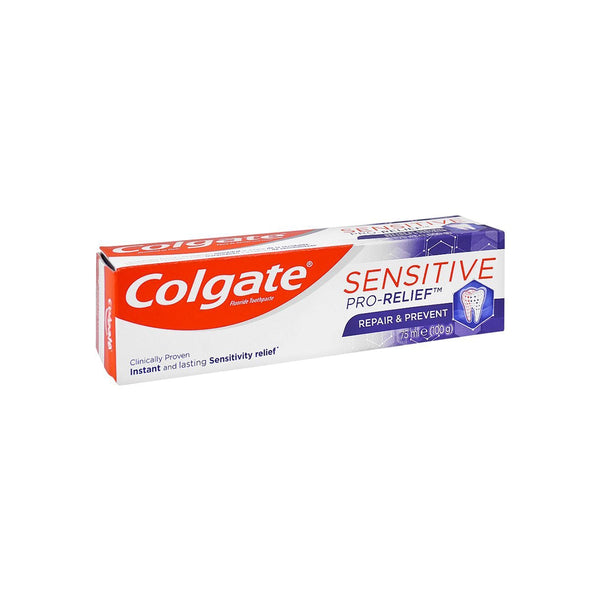 This 75ml tube of COLGATE SENSITIVE REPAIR & PREVENT toothpaste offers expert care for sensitive teeth. Its formula is designed to repair and protect, providing relief from pain caused by sensitivity. Trust in COLGATE for a professional solution to your tooth sensitivity.