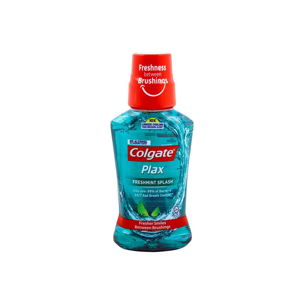 Colgate Thai M Wash 250ml Plax Fresh Mint is a refreshing mouthwash that offers 24/7 plaque protection and kills up to 99.9% of bacteria. With a fresh mint flavor, it effectively removes germs and leaves your mouth feeling clean and fresh. Improve your oral health and maintain fresh breath with Colgate Plax Fresh Mint.