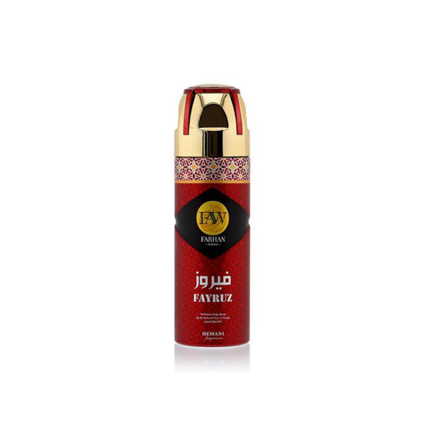 Introducing HEMANI FAW FAYRUZ BODY SPRAY: a refreshing and long-lasting fragrance that will keep you feeling confident all day long. Made from natural ingredients, this 200ml spray is gentle on the skin and provides a burst of invigorating scent with each use. Elevate your senses with HEMANI FAW FAYRUZ BODY SPRAY.