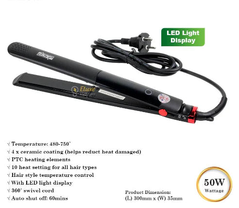 This advanced straightener offers adjustable temperature control and modern technology, guaranteeing healthy, damage-free hair. With a powerful 50W motor, you'll achieve sleek, salon-quality results in record time.
