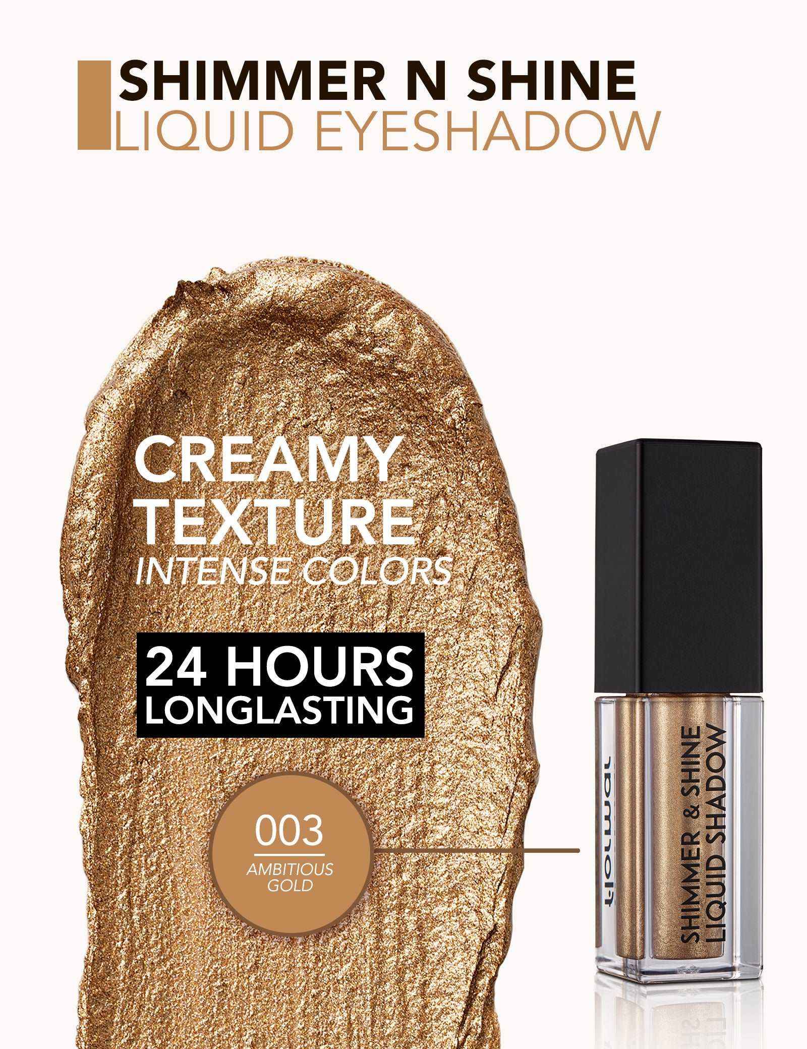 Shimmer & Shine Liquid Shadow If you desire an eyeshadow that will give your eyes a sparkling appearance and prevent your eye makeup from running,then Shimmer&Shine Liquid Shadow is at your service with its smooth texture and highly preferred 6 different colors options! Thanks to the longlasting properties of this eyeshadow,you can draw all eyes on you with your longlasting makeup. Select the shade that suits you and add shimmer to your eyes right away!...