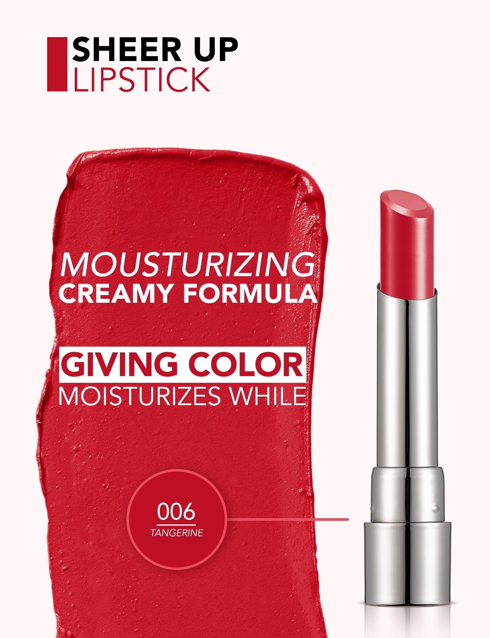 Flormar Sheer Up Lipstick, which has 16 different color options, helps to maintain moisture balance while coloring the lips with a glossy finish. A lipstick with special texture enriched with oils to smooth your lips and offer a glossy,colorful finish.