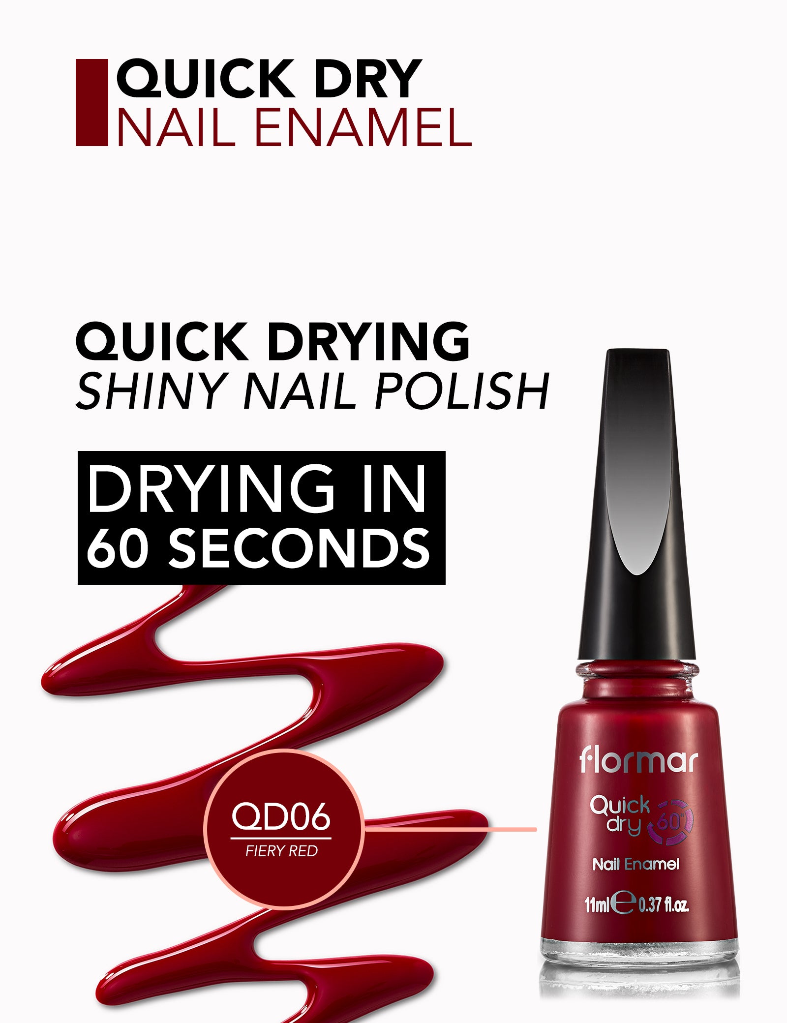 Quick Dry Nail Enamel Drying in one minute,Quick Dry Nail Enamel gives a shiny and colorful look. Flormal quick dry nail polish has a longwear performance on the nails thanks to its resistance against the external factors.