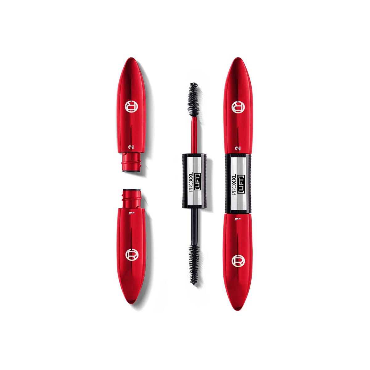 Our new Pro XXL 2-step mascara, infused with pro-keratin, allows you to have intense volume and salon-like lift in 1 mascara. First, use the straight brush for up to 17x volume. Then use the curved brush for a 65° lift effect. For a lifted lash look lasting up to 24 hours.