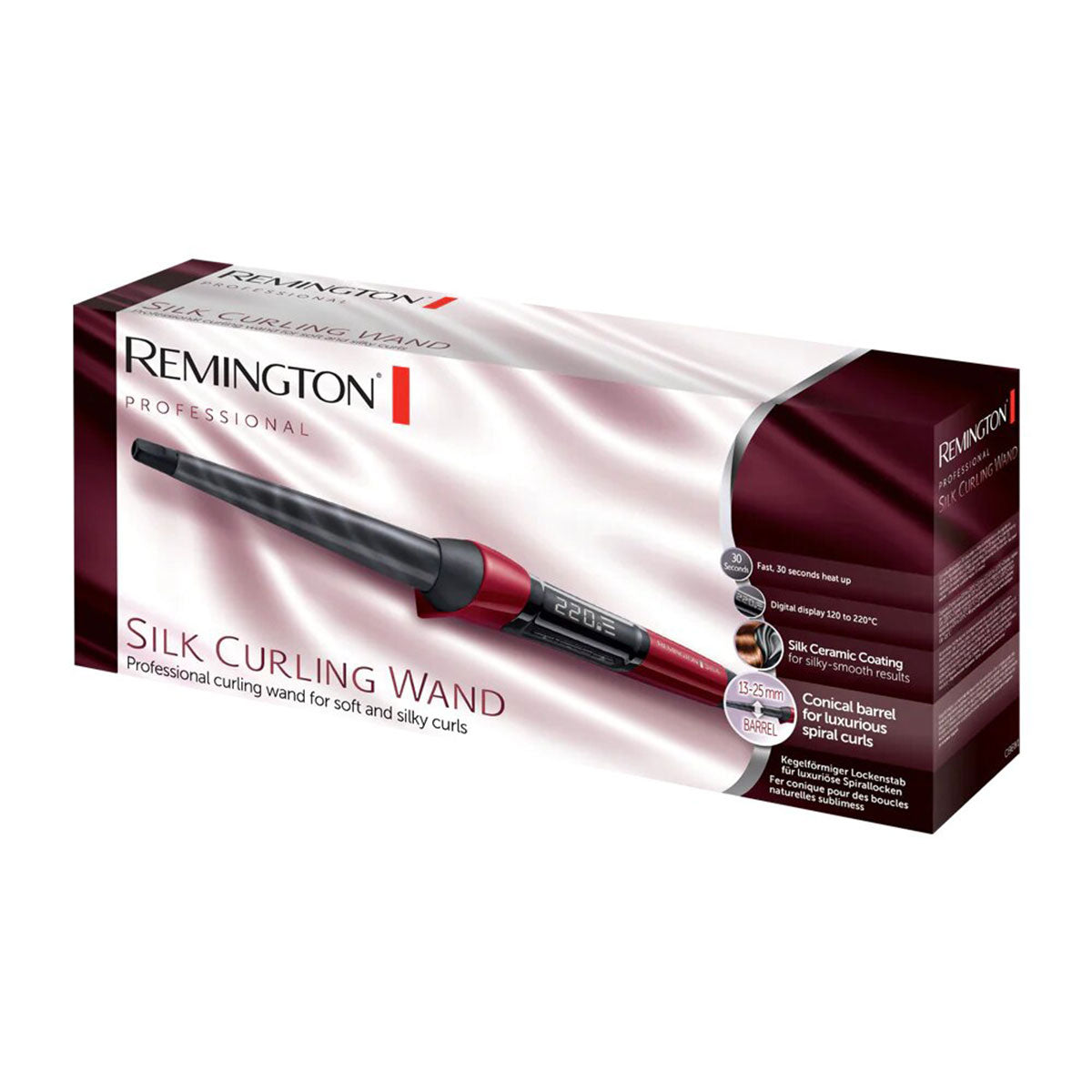The Remington Silk Curling Wand CI96W1 creates silky smooth curls and waves. This conical styling wand has a 13-25mm tapered barrel with advanced silk-infused ceramic coating. It allows you to create perfectly defined spiral curls as well as effortless loose waves.