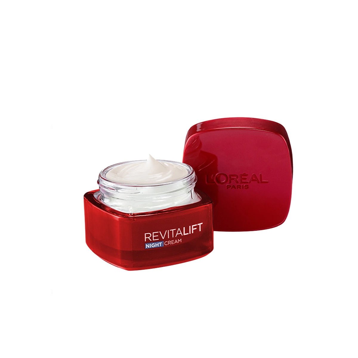 The LOREAL REVITALIFT MOISTURIZING NIGHT CREAM 50ML is a scientifically formulated night cream that deeply hydrates and nourishes your skin while you sleep. With its powerful blend of ingredients, it can reduce the appearance of wrinkles and fine lines by up to 35% in just 4 weeks. Wake up to smoother, firmer, and more radiant skin with this expertly crafted moisturizing night cream.