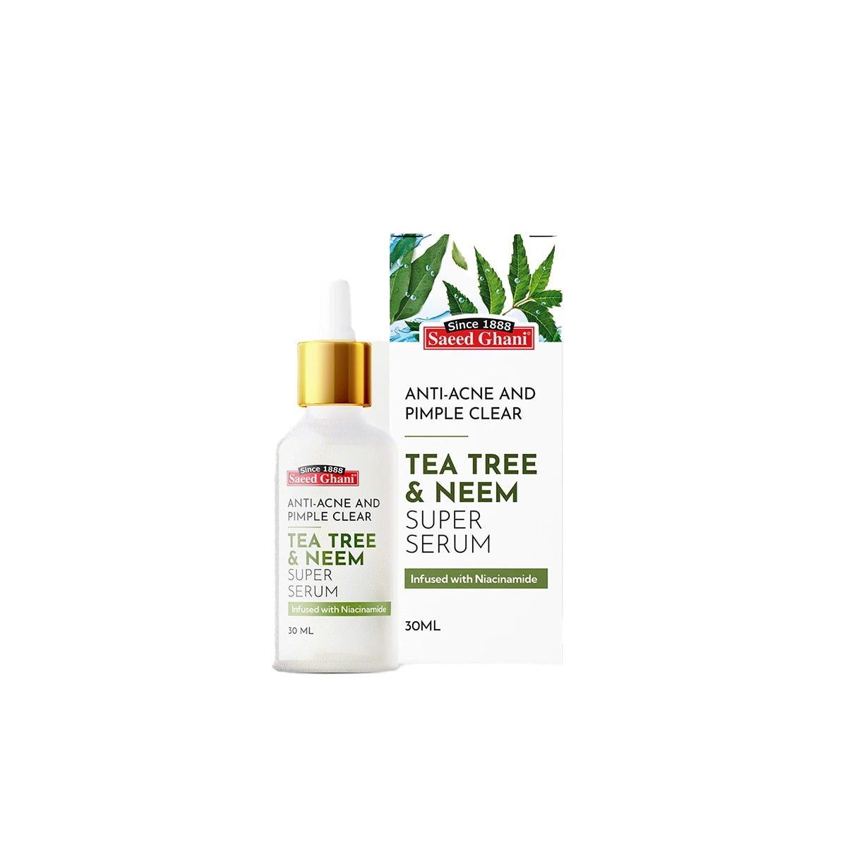 SAEED GHANI TEA TREE NEEM SUPER SERUM 30ML is an expertly crafted serum that combines the powerful benefits of tea tree and neem extracts. It detoxifies, purifies, and nourishes the skin, providing a clearer and healthier complexion. With a concentrated formula and a generous 30ml size, you can expect long-lasting results with every use.