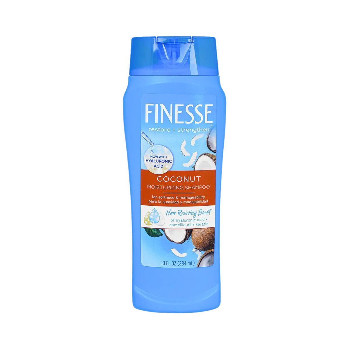 - With a blend of natural coconut oil and moisturizing agents, this shampoo leaves your hair feeling soft and nourished. Tame frizz and enhance shine with FINESSE SHAMPOO 384ML COCONUT MOISTURIZING. Expertly formulated for all hair types.