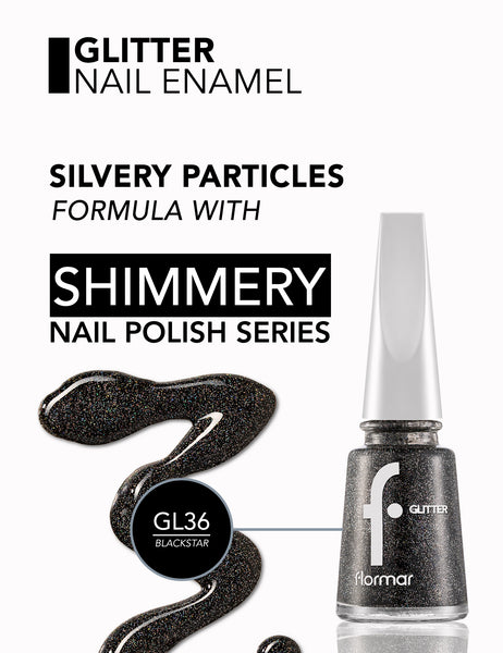 Shimmering nails. Specially designed Glitter Nail Enamel contains nacres in different sizes and textures. Thus, it provides intense and colorful glitter. Long-lasting Flormar nail polish will provide your hands with a brand new charm. When you apply a nail primer underneath, you can achieve even better results. HOW TO APPLY: Apply one coat to clean, dry nails and over a base coat. Allow drying. Apply a second coat wait 2 minutes and apply the Top...
