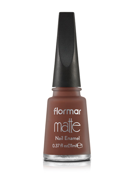 Matte look on your nails. Matte Nail Enamel’s special formula creates a velvety effect on your nails. Providing glamorous results in manicure, Flormar nail polish will leave a fascinating effect on your hands. HOW TO APPLY: Apply one coat to clean, dry nails and over a base coat. Allow drying. Apply a second coat wait 2 minutes and apply the Top Coat.