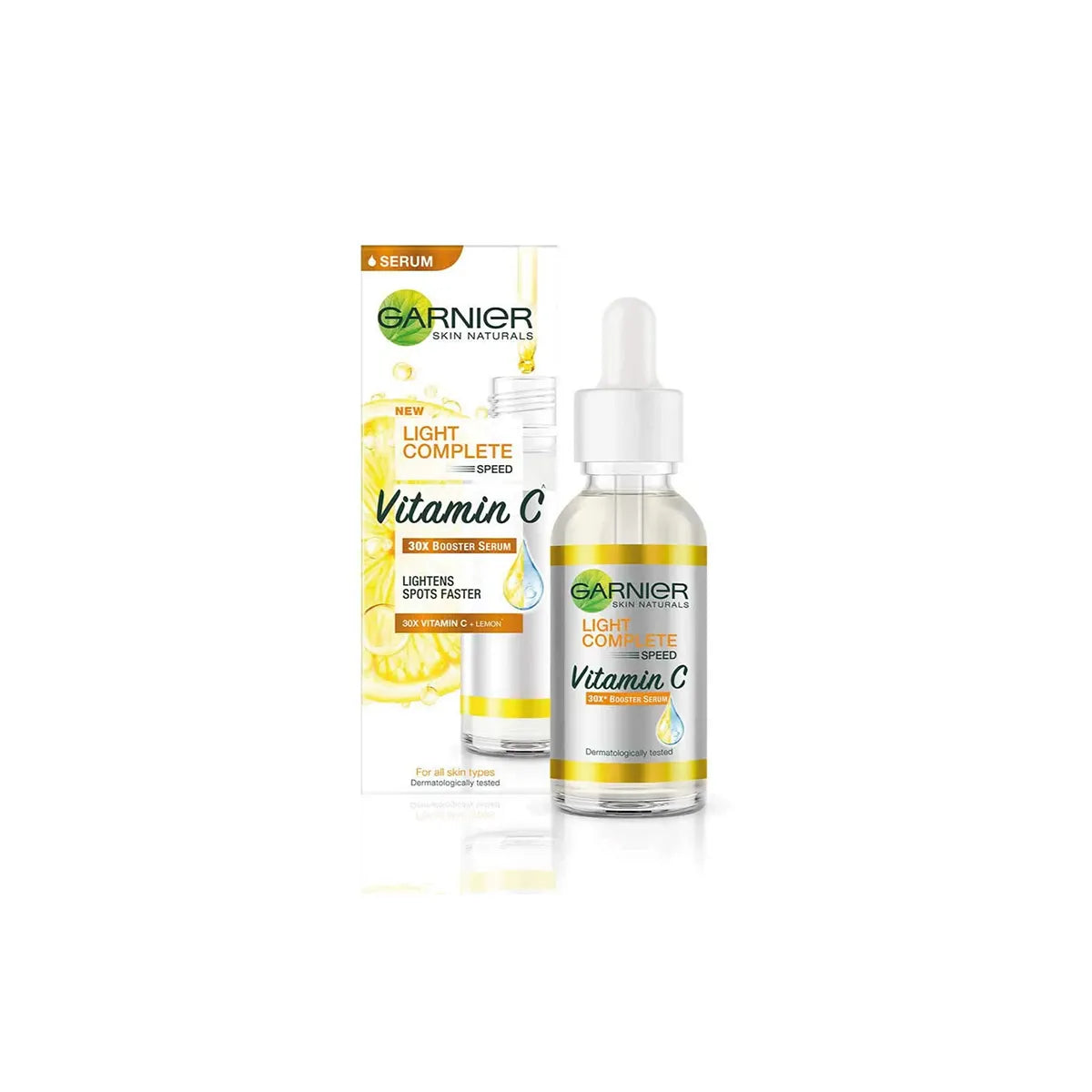Boost your skin's radiance with GARNIER LIGHTCOMPLETE VITAMIN C BOOSTER SERUM 30X. This powerful serum contains 30 times more Vitamin C to brighten and even out your complexion. Say goodbye to dullness and hello to a brighter, more youthful glow!