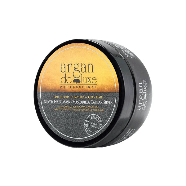 Argan Deluxe Silver Hair Mask is an intensive care treatment for colored or damaged hair, specially designed to deeply nourish and moisturize the hair. It contains natural argan oil, known for its nourishing and moisturizing properties, which enhances the health of the hair and makes it more shiny and soft.