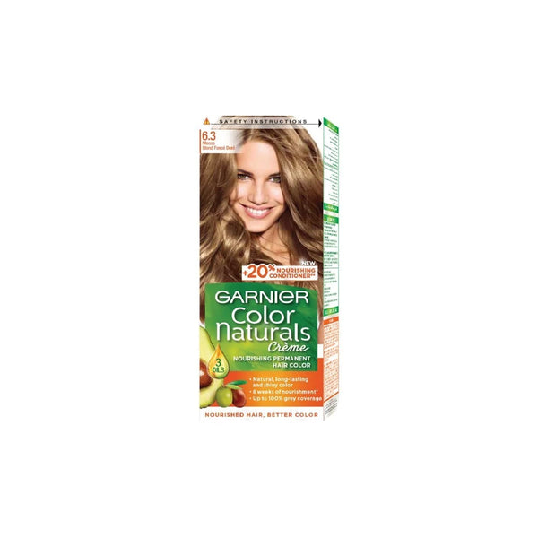 Experience vibrant, natural-looking hair color with GARNIER COLOR NATURAL 6.3. This permanent hair dye is formulated with natural ingredients for a gentle and nourishing color that lasts. Achieve up to 100% gray coverage with rich, long-lasting color. Make your hair color dreams a reality with GARNIER COLOR NATURAL 6.3.