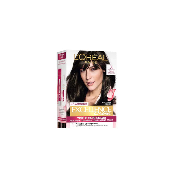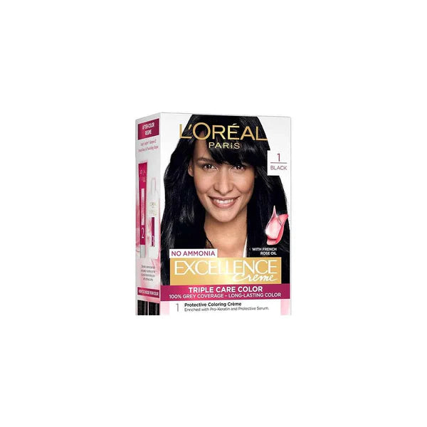 L’Oréal Excellence Color Series is scientifically formulated to deliver professional salon-quality results at home. With advanced technology, it ensures 100% grey coverage, vibrant shades, and long-lasting color that leaves hair soft, shiny, and nourished.