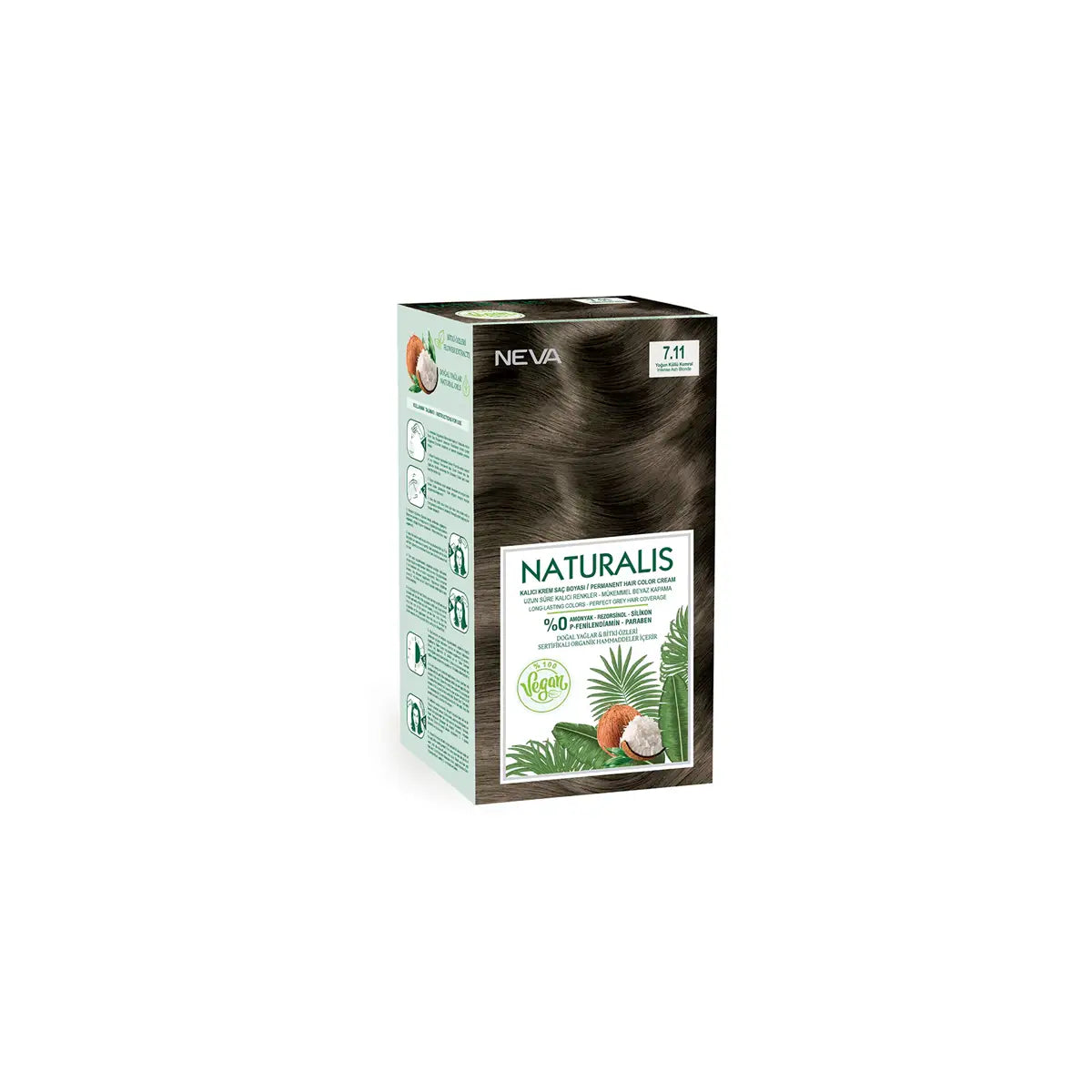 Neva Naturalis Hair Color 7.11 is a professional-grade, scientific formula that provides 100% grey coverage. Its natural, long-lasting color stays vibrant for up to 8 weeks. Expertly crafted to leave hair shiny, smooth, and nourished. Achieve beautiful, professional results with NEVA NATURALIS HAIR COLOR 7.11.