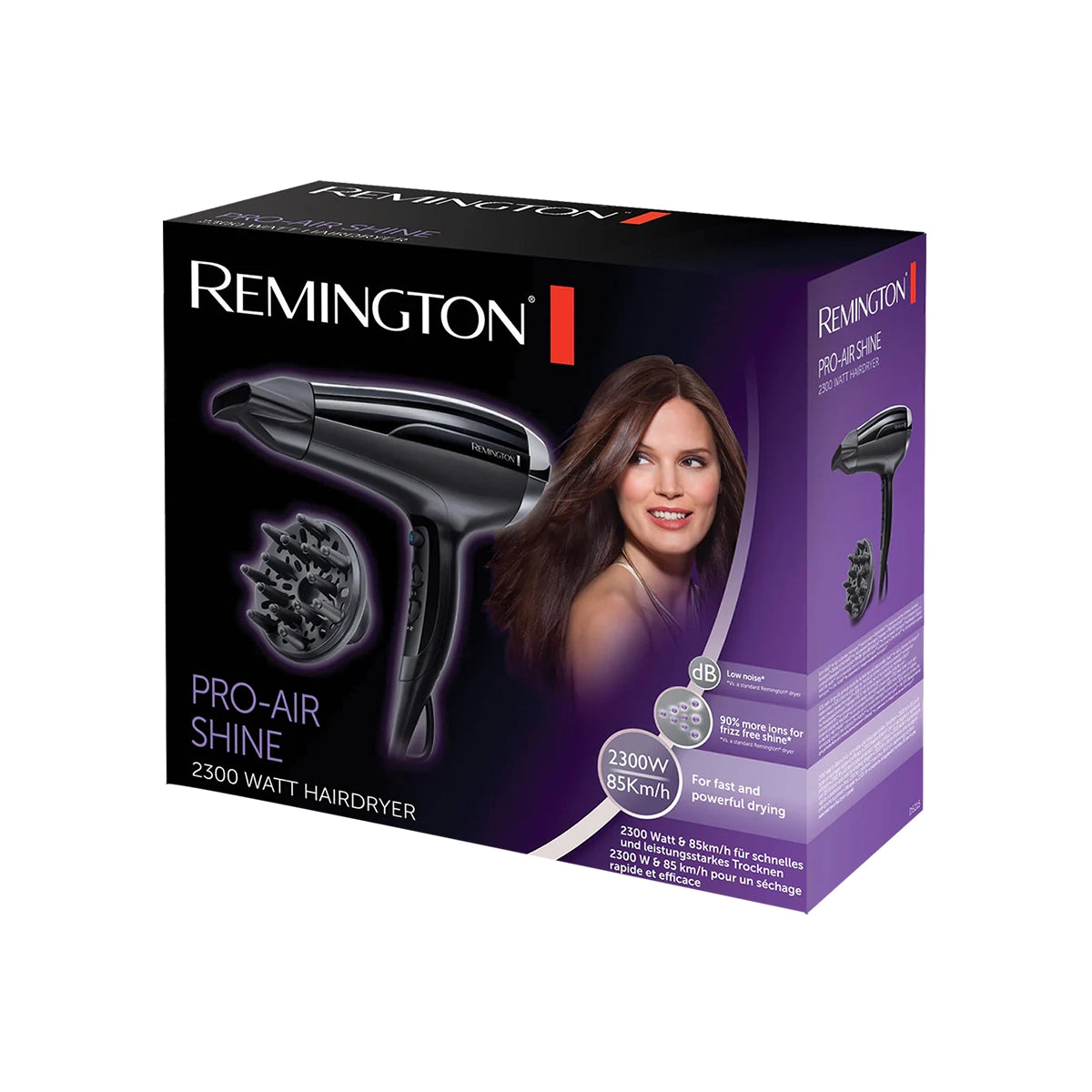 The REMINGTON HAIR DRYER D5215U5I features advanced ceramic technology and a 1875 watt motor for fast and efficient drying. With 3 heat and 2 speed settings, it offers customizable styling options for all hair types. Its ionic technology reduces frizz and adds shine for a smooth, salon-worthy finish.