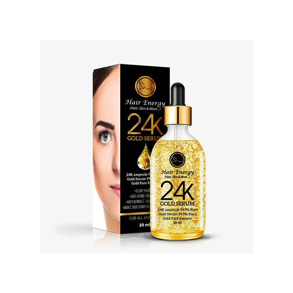 Enhance your hair's shine and strength with HAIR ENERGY 24K GOLD SERUM. Formulated with real 24K gold, this serum nourishes and revitalizes hair from the inside out. Enjoy lustrous locks and a healthier scalp with just a few drops. Discover the power of gold for your hair today.