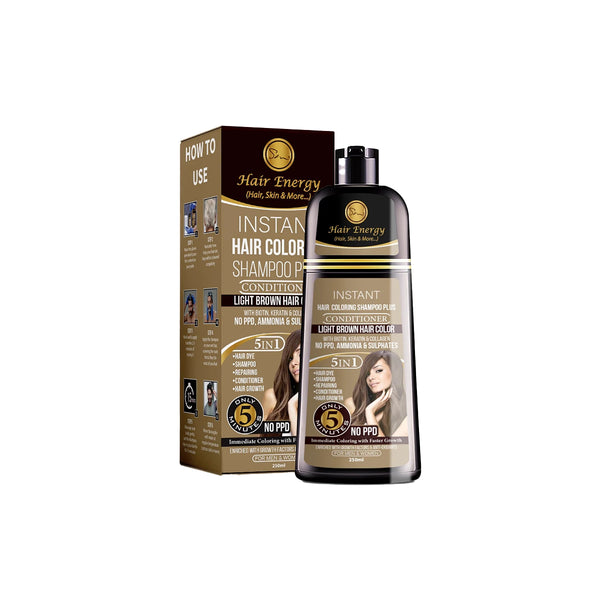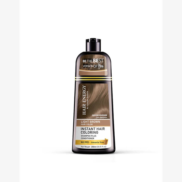 Introducing Hair Energy Coloring Shampoo in a beautiful light brown shade. This 250ml bottle gently cleanses and revitalizes your hair while adding a natural-looking touch of color. With no harsh chemicals, it provides a safe and easy way to achieve your desired hair color. Experience vibrant and healthy hair with Hair Energy.