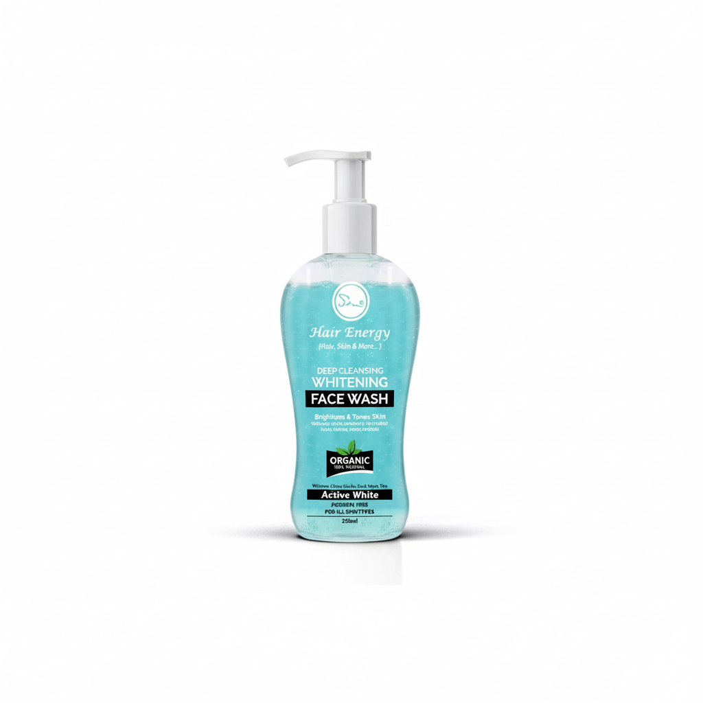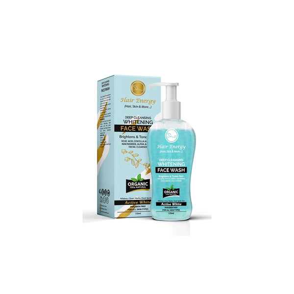 Cleanse and brighten your skin with HAIR ENERGY DEEP CLEANSING WHITENING FACE WASH 125ML. This powerful formula deeply cleanses and exfoliates, leaving your skin clear and radiant. With regular use, this face wash helps reduce the appearance of dark spots and discoloration for a brighter, more even complexion.