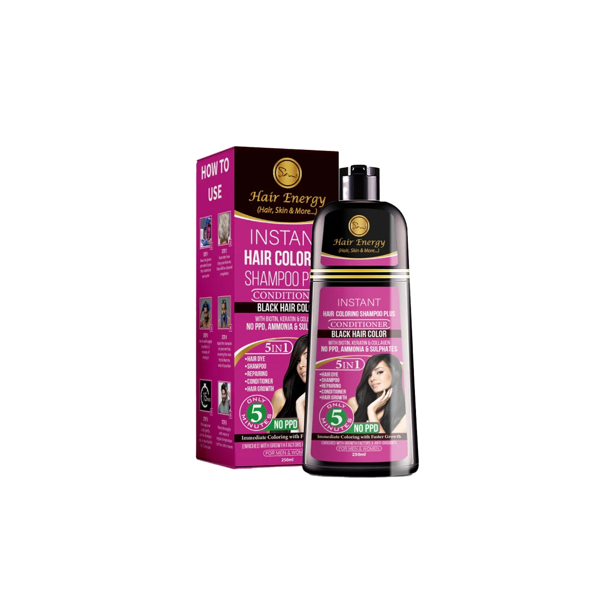 Experience the convenience and efficiency of Hair Energy Instant Hair Coloring Shampoo Plus 250ml. This innovative formula combines shampoo and hair coloring in one easy step, saving you time and effort. Enjoy vibrant, long-lasting color and nourished, healthy hair with Hair Energy.