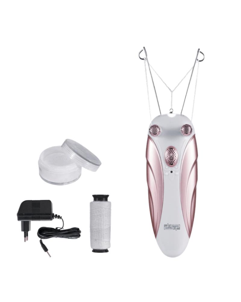 one end of thread is anchored, usually in the teeth of the operator, while the other end, which is coiled multiple times, glides over and entraps unwanted hairs. This maneuver is used to remove multiple hairs simultaneously with one swift pull.